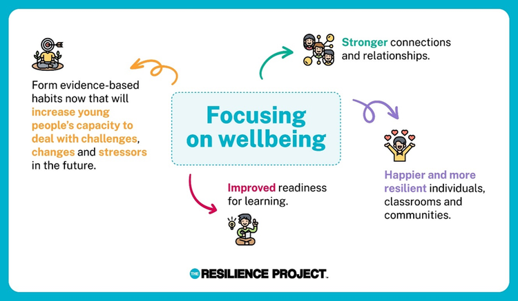 Schools have a unique opportunity to improve the mental health outcomes for young people and positively influence the wellbeing of a whole school community. By focusing on building wellbeing strategies, we provide individuals with the understanding and tools to manage life's challenges and stressors. This approach also fosters a happier, calmer and more resilient school environment.